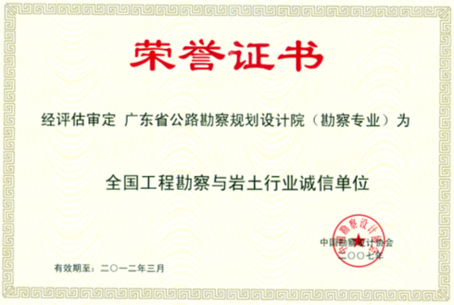 我院被評為首批全國工程勘察與巖土行業(yè)誠信單位