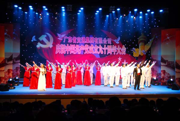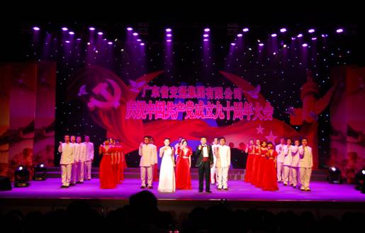 2011年7月1日,省交通集團慶祝中國共產黨成立九十周年文藝匯演在永福路45號大院文化活動中心拉開帷幕。我司精心編排的特別節目——配樂詩朗誦《光輝歷程》主題突出,大氣磅礴,贏得了現場領導和嘉賓的交口稱贊。