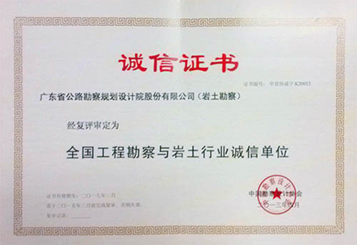 近日,公司順利通過中國勘察設計協會的復評,被評為“全國工程勘察與巖土行業誠信單位”。特表祝賀!