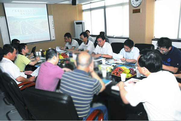 2013年6月26日,省交通運輸廳賈紹明副廳長率廳基建處黃成造處長、省交通運輸工程造價管理站吳偉彬站長以及南粵交通投資有限公司有關領導一行來我公司調研指導工作,會議主要聽取了揭惠高速公路設計總體方案的匯報。匯報結束后,賈紹明副廳長對深入貫徹“安全、舒適、環保、和諧”的設計新理念以及通過優化設計降低工程造價等方面提出了新希望和新要求,并鼓勵我公司牢牢把握交通建設新一輪大發展的機遇,為改善地區發展不平衡的交通現狀貢獻力量。