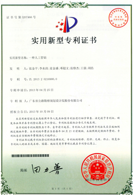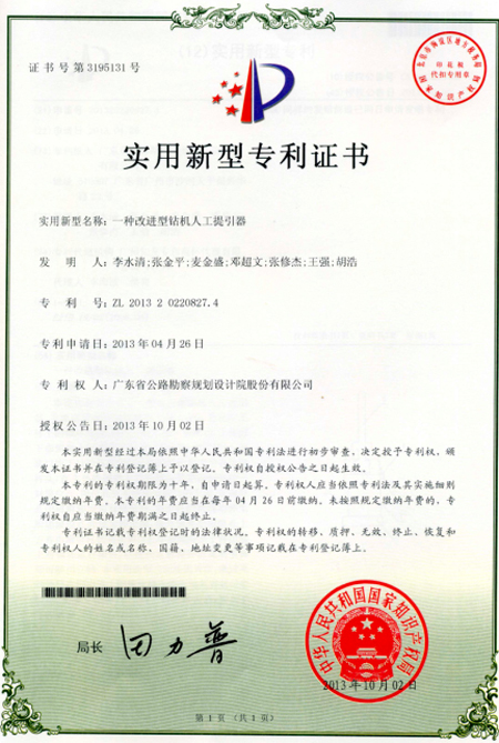 熱烈祝賀: 勘察分公司研發(fā)的“一種改進(jìn)型鉆機(jī)人工提引器”和“一種人工管鉆”成果,喜獲由中華人民共和國(guó)國(guó)家知識(shí)產(chǎn)權(quán)局授予的實(shí)用新型專(zhuān)利權(quán)。