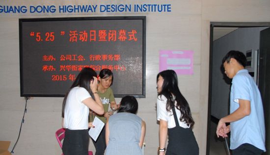 “5.25”活動(dòng)日由公司工會(huì)、行政事務(wù)部主辦,天河區(qū)興華街家庭綜合服務(wù)中心承辦。活動(dòng)現(xiàn)場(chǎng)組織了心理測(cè)試、心理知識(shí)展覽、愛(ài)心義賣(mài)、 “一氣呵成”和“幸運(yùn)兒”等項(xiàng)目,60余名員工積極參與了活動(dòng),現(xiàn)場(chǎng)一片歡聲笑語(yǔ)。