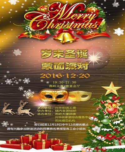 2016年12月20日晚上,由興華街團工委主辦的以“歲末圣誕•蒙面派對”為主題的單身員工聯誼派對活動在燕嶺大廈2樓宴會廳舉行,參加活動人數共計230余名,我公司20余名員工參加了此次活動。