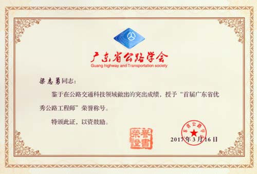 “廣東省優(yōu)秀公路工程師”的評比活動,每兩年評選一次,旨在激勵和表彰省內(nèi)廣大公路交通工作者積極投身建設(shè)創(chuàng)新型國家的偉大事業(yè),踐行綠色交通理念,促進公路交通科學技術(shù)的繁榮和發(fā)展,促進公路交通科技人才的成長和科技創(chuàng)新。陳潮銳、梁志勇副總工程師的當選,既是對他們在公路交通科技領(lǐng)域所做貢獻的充分肯定,也是省公路學會對廣大公路科技人才的重視、關(guān)心和愛護的具體體現(xiàn)。