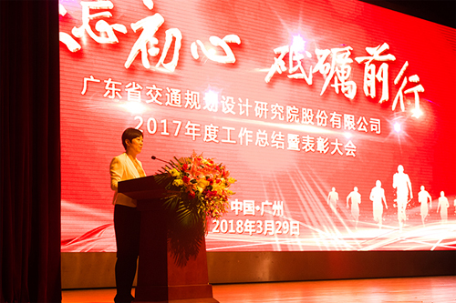 會議由李琴副總經理主持。公司總經理黃湛軍作題為《凝心聚力,奮勇拼搏,努力推動公司跨越式發展再上新臺階》的工作報告,對2017年各項工作進行總結,并對2018年的工作作出整體部署;隨后,會議對2017年度在生產經營、職能管理等各項工作中表現優秀的各類先進進行了集中表彰。