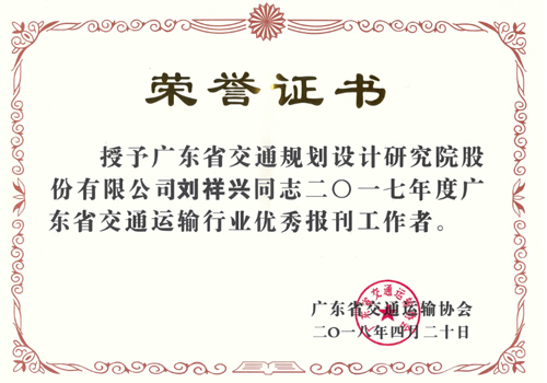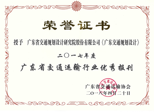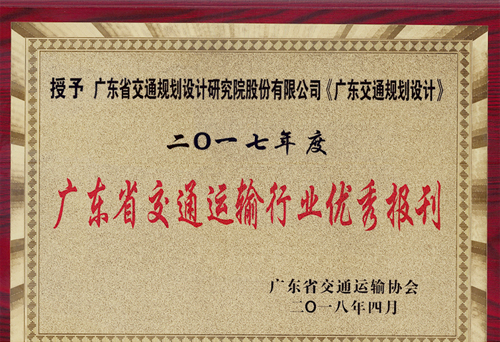 公司報刊《廣東交通規劃設計》榮獲2017年度廣東省交通運輸行業優秀報刊