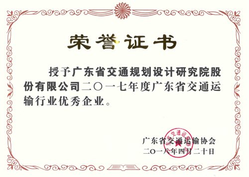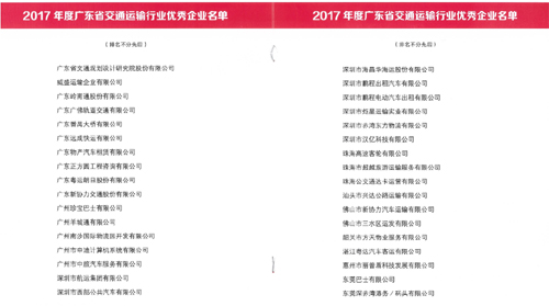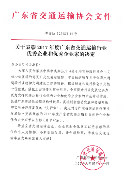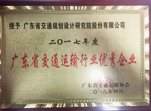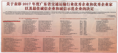 公司榮獲2017年度廣東省交通運輸行業優秀企業榮譽稱號