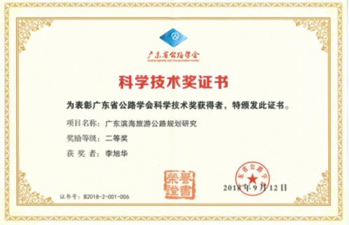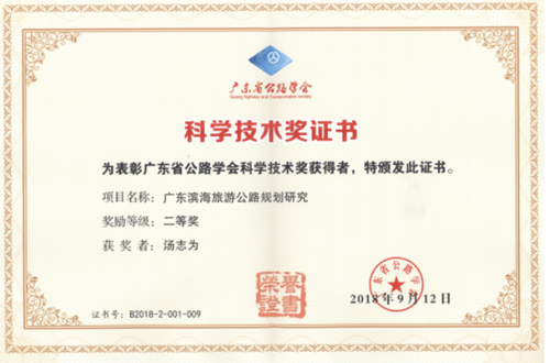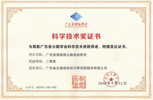 近日,從廣東省公路學會傳來喜訊,公司參與編制的“廣東濱海旅游公路規(guī)劃研究項目”榮獲“2018年首屆廣東省公路學會科學技術獎"二等獎。李旭華、湯志為榮獲個人獎。