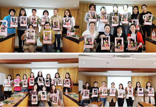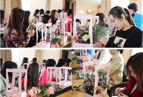 陽春三月,正是萬物生光輝的好時(shí)節(jié);身在花城,更能盡情領(lǐng)略鮮花的美麗與芬芳。在本次花藝活動(dòng)現(xiàn)場,來自各部門、分院、子公司的50余名女職工在外部花藝講師的教授下,親自參與插花花籃的手工制作。嬌艷的玫瑰、素雅的康乃馨、明麗的非洲菊,配以滿天星的細(xì)密玲瓏以及尤加利葉的交錯(cuò)別致,在各位女職工的心靈手巧之下,更是相得益彰、璀璨增華。