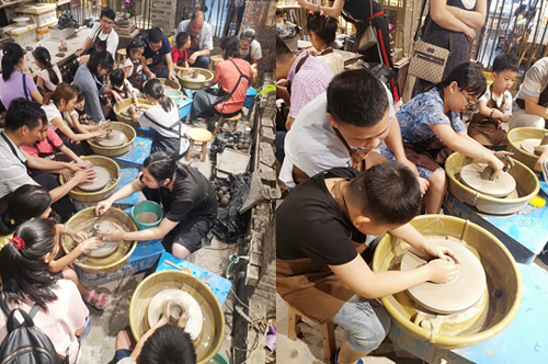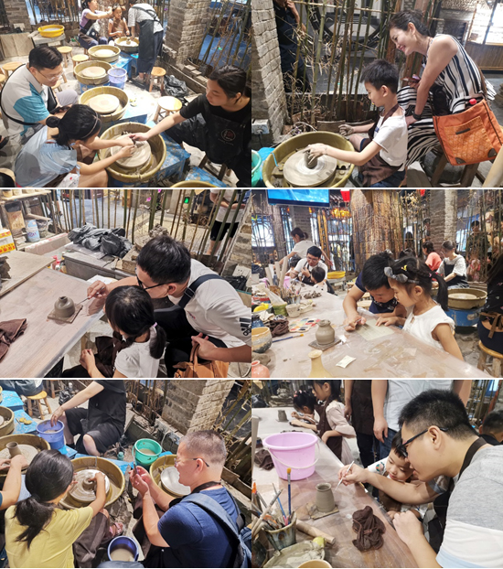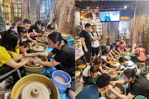 活動現場,各位同事帶著子女,在專業老師的講解和指導之下,一起拉坯、刻畫,親手制作出獨一無二的陶藝作品。一個個形狀、花紋各異的陶瓷坯件之上,都凝結著一段段獨特的回憶以及一份份珍貴的親子情。