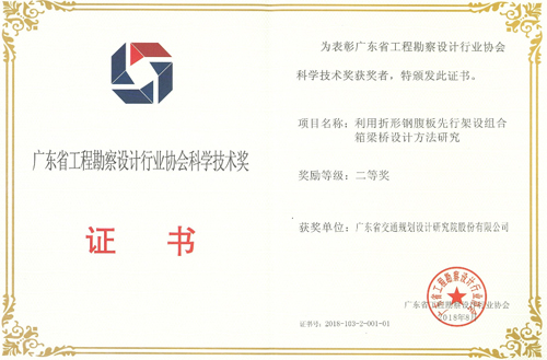 2018年廣東省工程勘察設(shè)計(jì)行業(yè)協(xié)會(huì)科學(xué)技術(shù)獎(jiǎng):