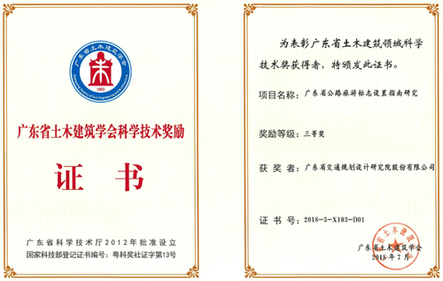 《廣東省公路旅游標(biāo)志設(shè)置指南研究》榮獲三等獎(jiǎng),獲獎(jiǎng)人員:徐俊德、許蔚華、謝陳峰、楊振星、唐偉。
